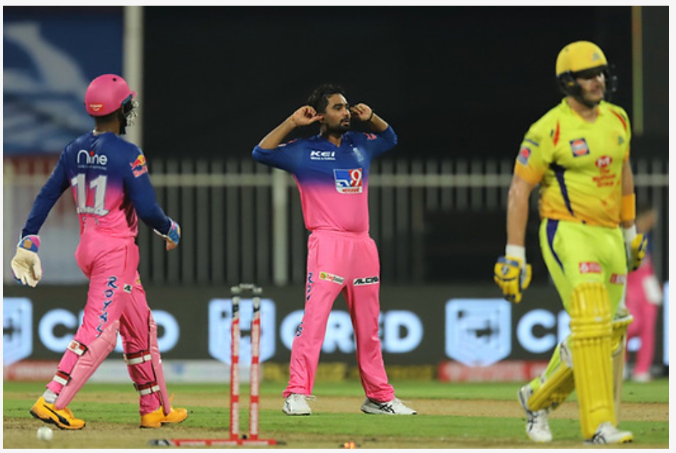 Chennai’s openers Vijay and Watson provided them a decent start adding 53 runs in the first six overs. Tewatia, the leg-spinner came on to bowl and dismissed Watson first. Then, Gopal ended Vijay’s innings and in the over later Tewatia dismisses Curran and Gaikwad. This span of 3 overs summed up Chennai’s middle order woes for the season ahead.