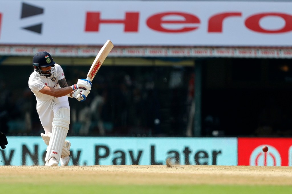 India’s second innings was all about the partnership between Ashwin and Virat. The team was in trouble again (not in the context of the match but the innings) at 106/6 but their 96-run partnership consolidated India’s position in the game even further. On a wicket that was deteriorating quickly, the two showed that a clear game plan and a solid defense will get you some runs. Both of them followed two contrasting approaches – Virat was cautious while Ashwin went all out with the sweep to score at a brisk pace. The former displayed a masterclass on how to bat against spin and admitted to learn from the mistakes that he had committed in previous innings. His knock (62 off 149 balls) had the subtle nuances that were required on a raging turner like this – changing the face of the bat at the moment of contact, fully committed on the front foot and back foot while not being stuck on the crease, playing with the spin vs the right-arm and left-arm bowlers and of course curbing his instincts to play the drive more often. He stood comfortable in his defense while the local boy Ashwin was on a roll at the other end.